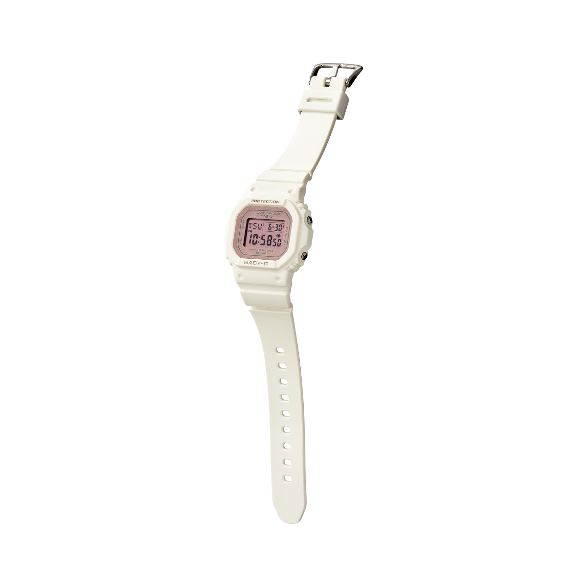 Disfrute de tonos frescos y sutiles inspirados en los colores de la primavera. El delgado y compacto BGD-565 florece en colores primaverales para entregarnos un BABY-G casual y resistente a impactos. El ajuste cómodo combinará a la perfección con su estilo de vida activo. La esfera rosa cereza con revestimiento brillante y perlado, sobre un blanco mate natural, presenta un aspecto sereno que agregará una sensación de belleza primaveral a su vida cotidiana.