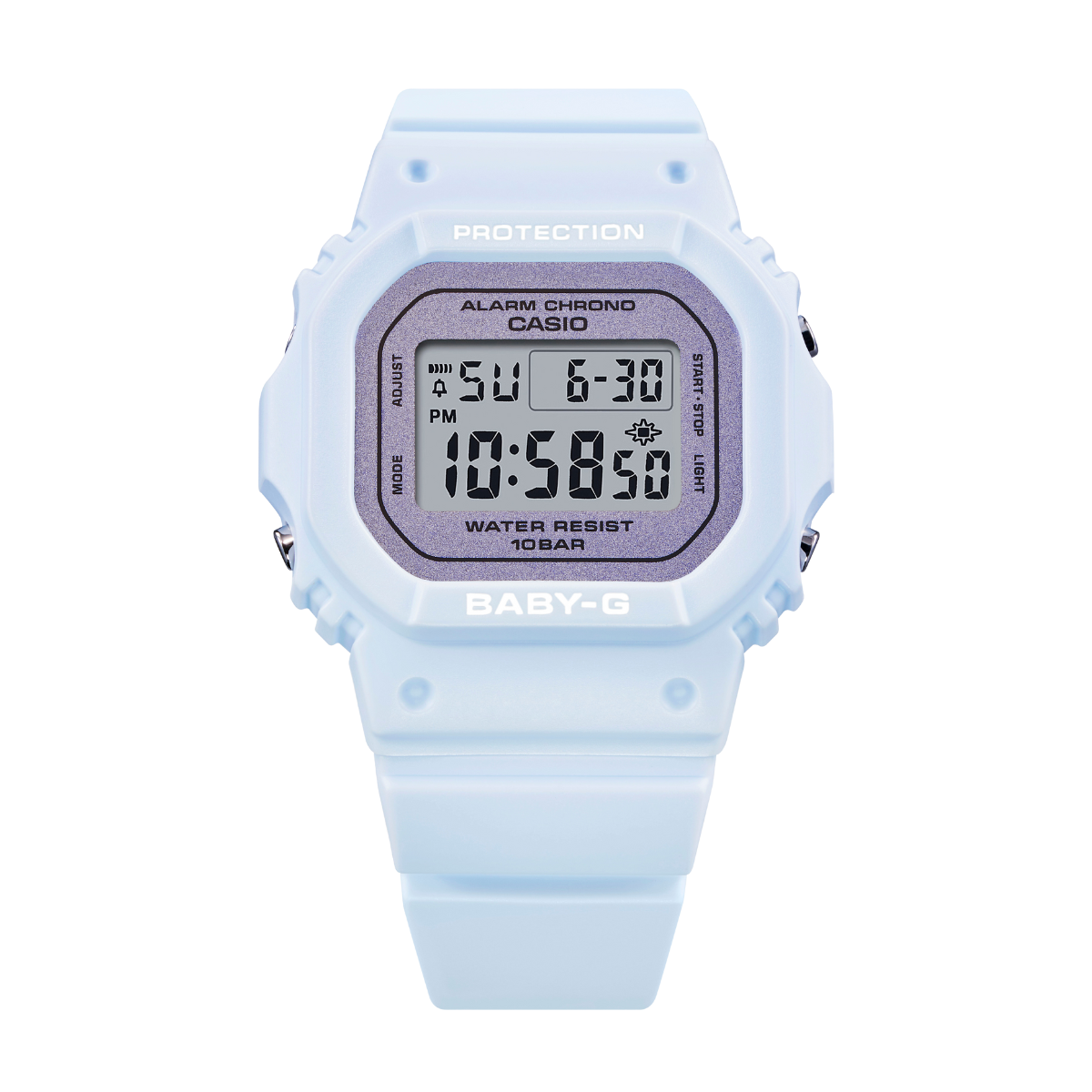 Disfrute de tonos frescos y sutiles inspirados en los colores de la primavera. El delgado y compacto BGD-565 florece en colores primaverales para entregarnos un BABY-G casual y resistente a impactos. El ajuste cómodo combinará a la perfección con su estilo de vida activo. La esfera lila y púrpura con revestimiento brillante y perlado presenta un aspecto brillante, pero delicado que agregará una sensación de belleza primaveral a su vida cotidiana.