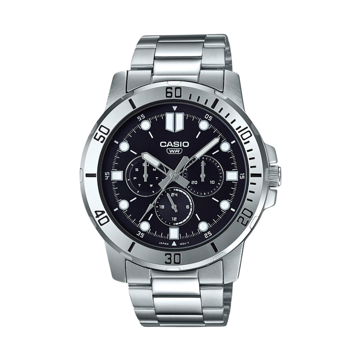 • Resistente al agua • Indicador de fecha, día y 24horas • Correa de acero inoxidable