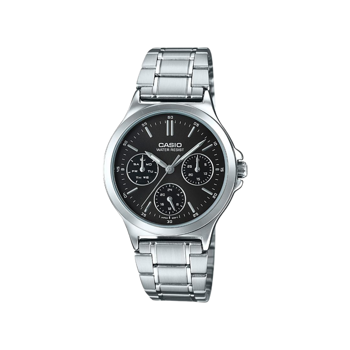 • Resistente al agua • Indicador de fecha, día y 24horas • Correa de acero inoxidable
