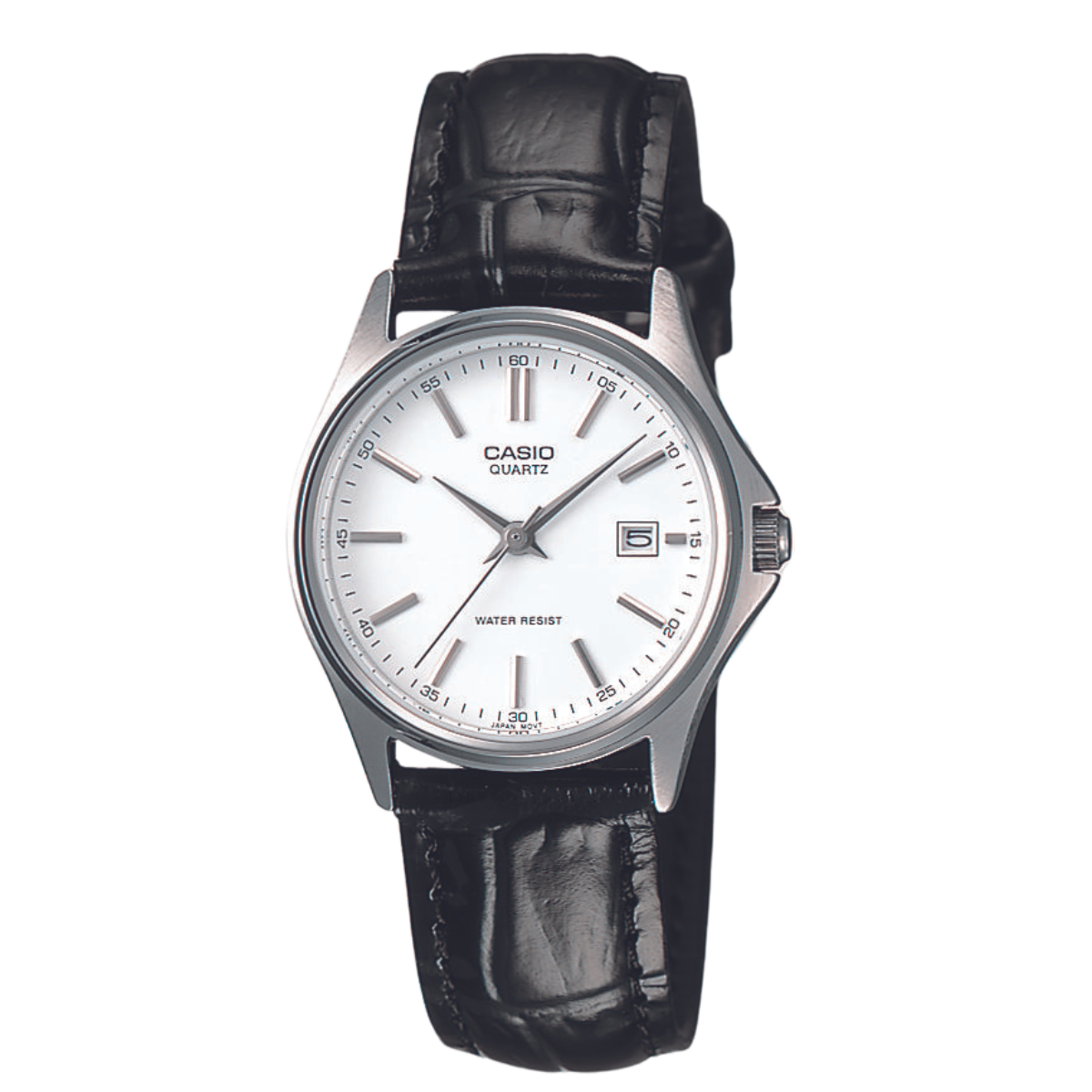 Un sencillo reloj analógico de 3 manecillas. Tiene un indicador de fecha en la posición de las 3 en punto.