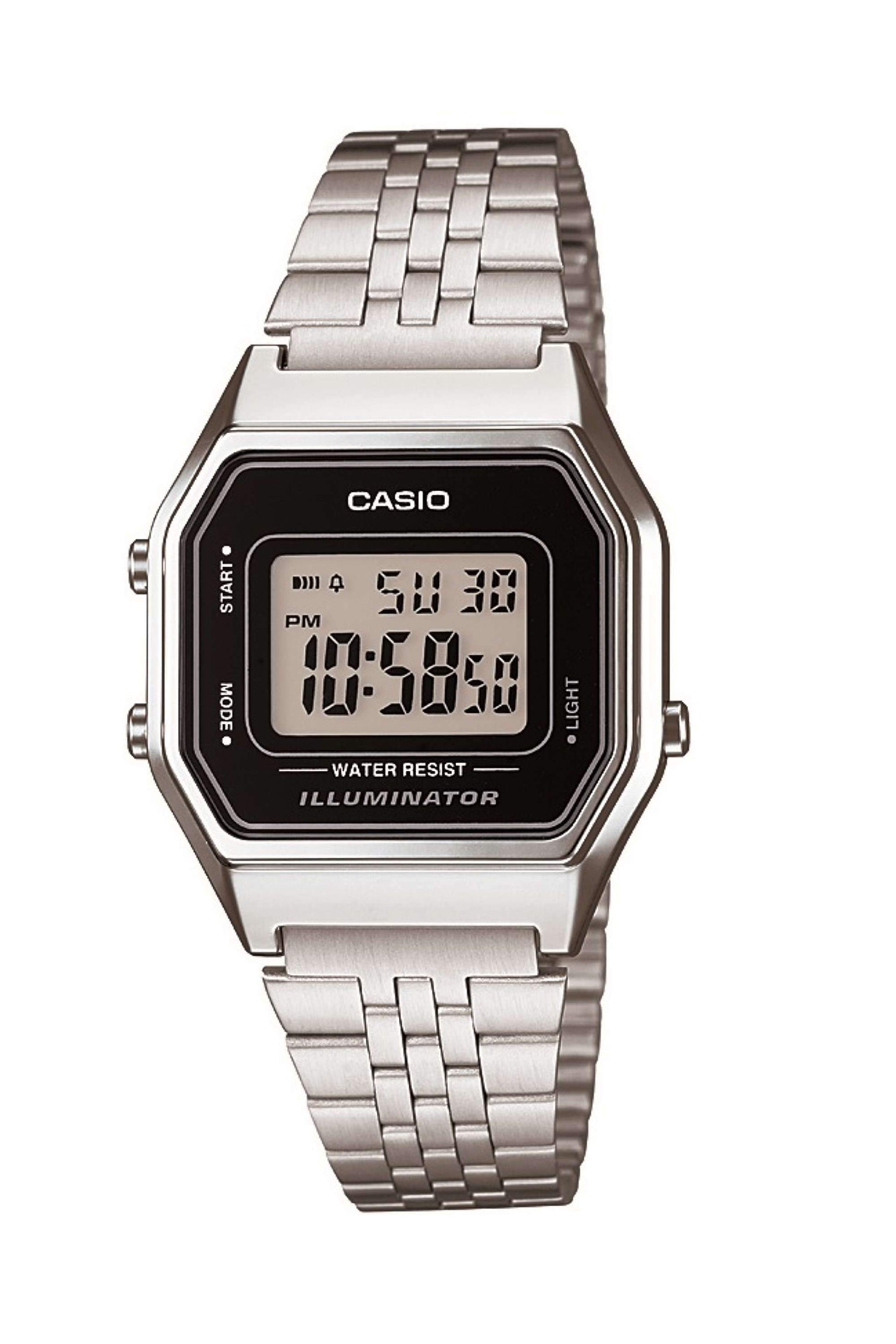 • Cronómetro de 1/100 segundos • Alarma • Iluminador LED • Resistente al agua • Correa de acero inoxidable • Popular diseño retro