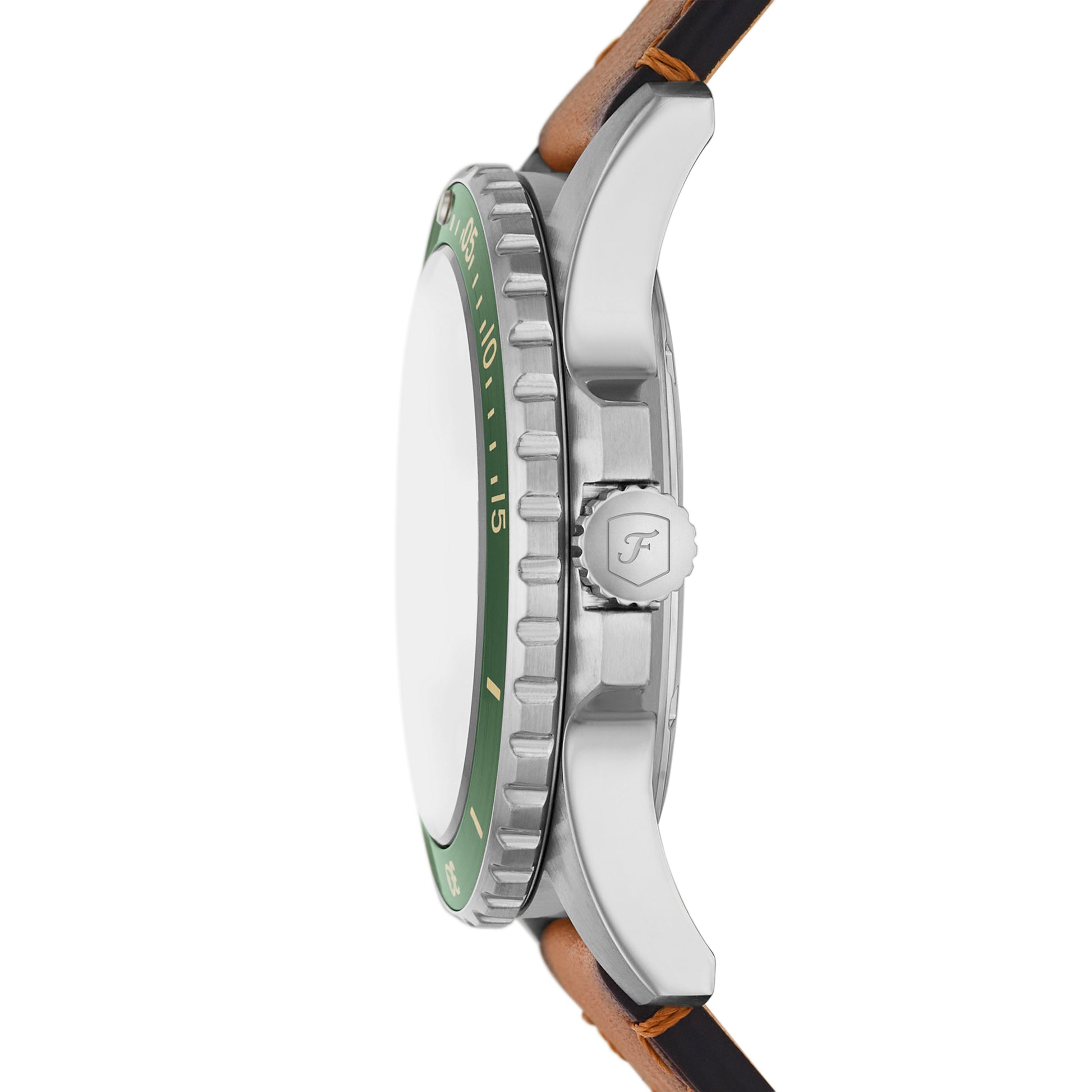 Los detalles de diseño intencionado definen nuestra colección de relojes Fossil Blue Dive. Este reloj de estilo de buceo está hábilmente elaborado con una correa de cuero LiteHide™ color tostado, índices geométricos y un bisel giratorio unidireccional. Probado a 100 metros de resistencia al agua. *No certificado ISO.