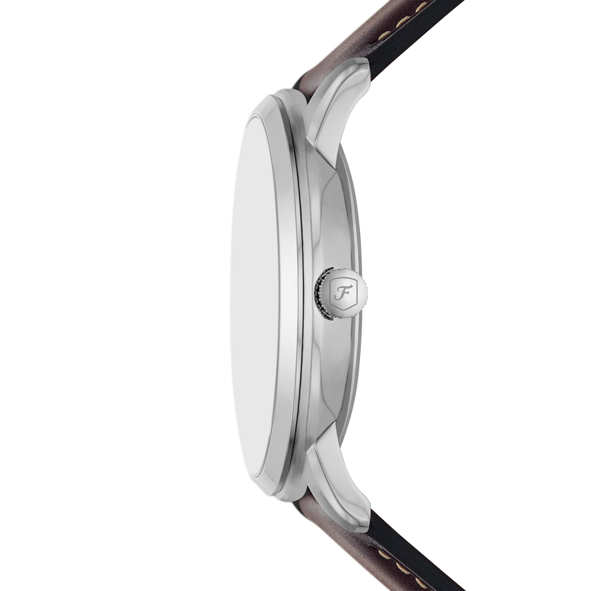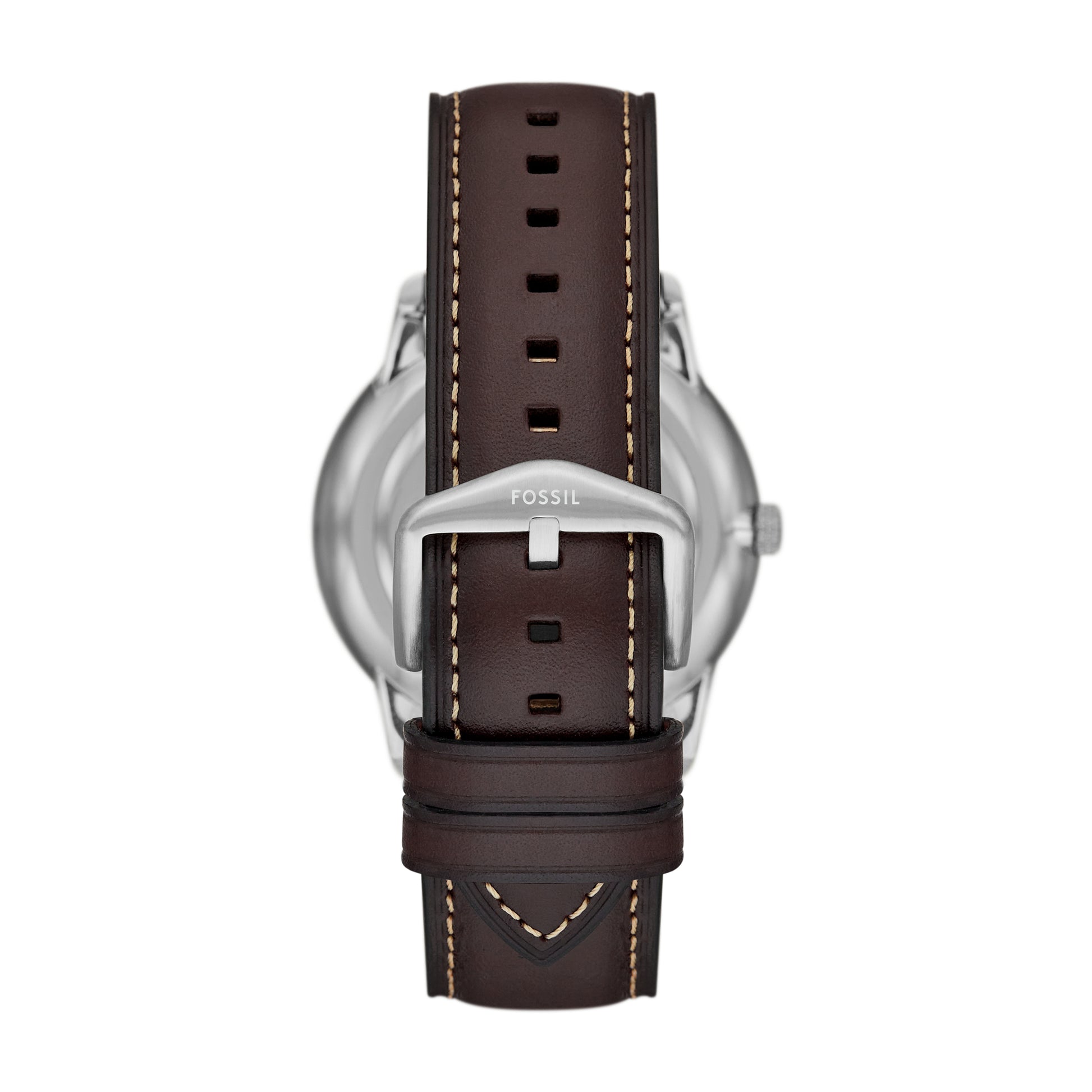 Este Neutra Moonphase de 42 mm cuenta con una esfera de rayos de sol, movimiento multifunción de fase lunar y una correa de cuero marrón.