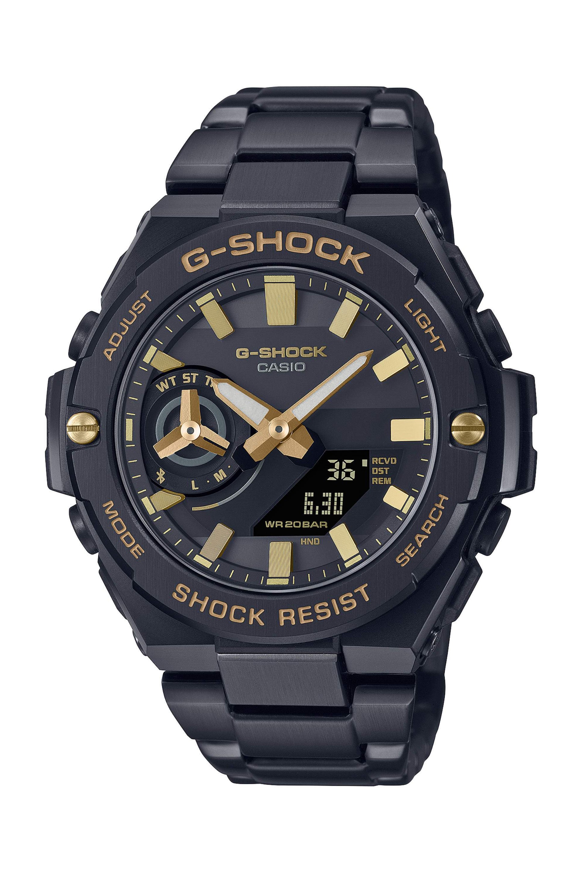 Deléitese con la ecléctica combinación G-STEEL de componentes de metal y resina en un popular esquema de colores: negro y dorado. La construcción resistente se combina con un diseño elegante con marco metálico con baño de iones en color dorado sobre una base negra. Esta sofisticada expresión de moda con una sensación de lujo y una apariencia moderna lo lleva a donde quiera ir.