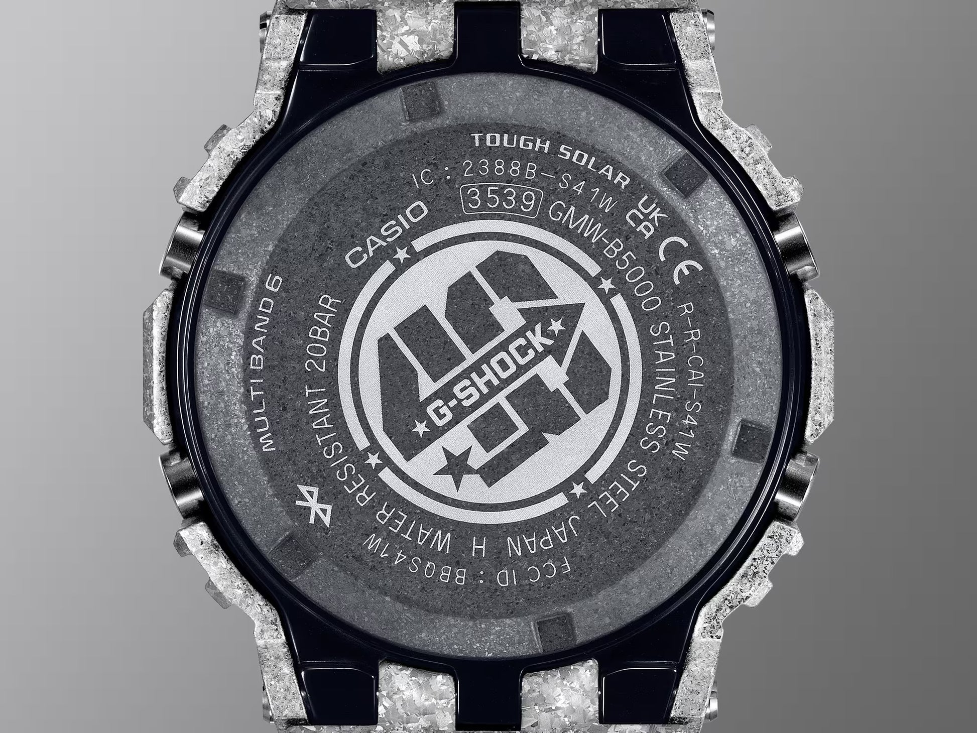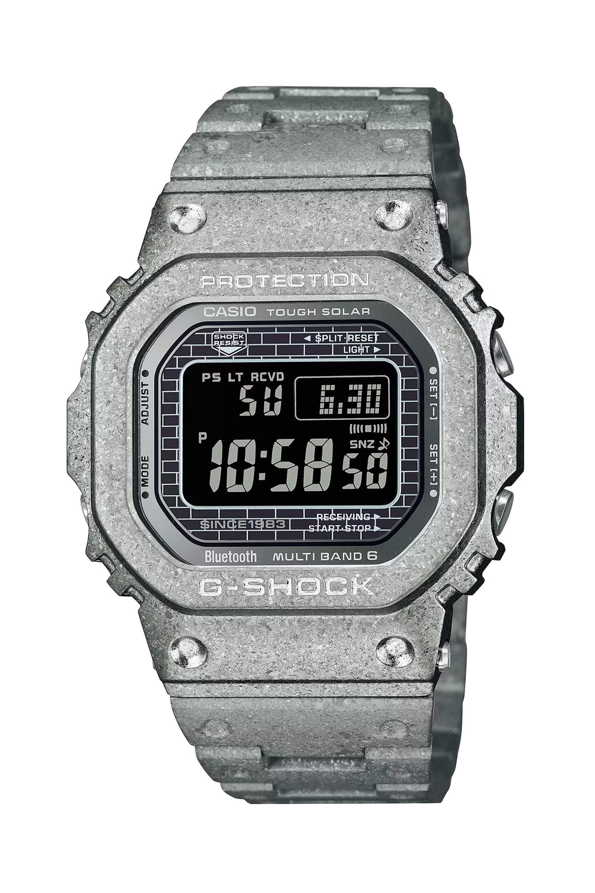 Agregue una expresión definitiva y sólida a su estilo con un reloj de edición limitada recristalizado G-Shock del 40.º aniversario. Celebramos este aniversario con el GMW-B5000PS, que se suma a la línea de relojes GMW-B5000 completamente metálicos que retoman el primer G-Shock, el DW-5000, que debutó hace 40 años, en abril de 1983. El reloj de edición limitada está revestido con acero inoxidable recristalizado y endurecido en capas profundas, desarrollado con este fin. Después de la recristalización y el endurecimiento en capas profundas, el marco y la correa reciben un revestimiento de carburo de titanio (TiC), y la parte posterior de la carcasa atornillada recibe un revestimiento de DLC que le confiere un aspecto audaz y radiante. En un homenaje especial al DW-5000, el dial incluye la frase “SINCE 1983”. La parte posterior de la carcasa lleva grabado el logotipo del 40.º aniversario diseñado por Eric Haze, y el botón inferior izquierdo lleva grabada una estrella, para lograr un reloj que cristaliza la celebración del 40.º aniversario de G-Shock.