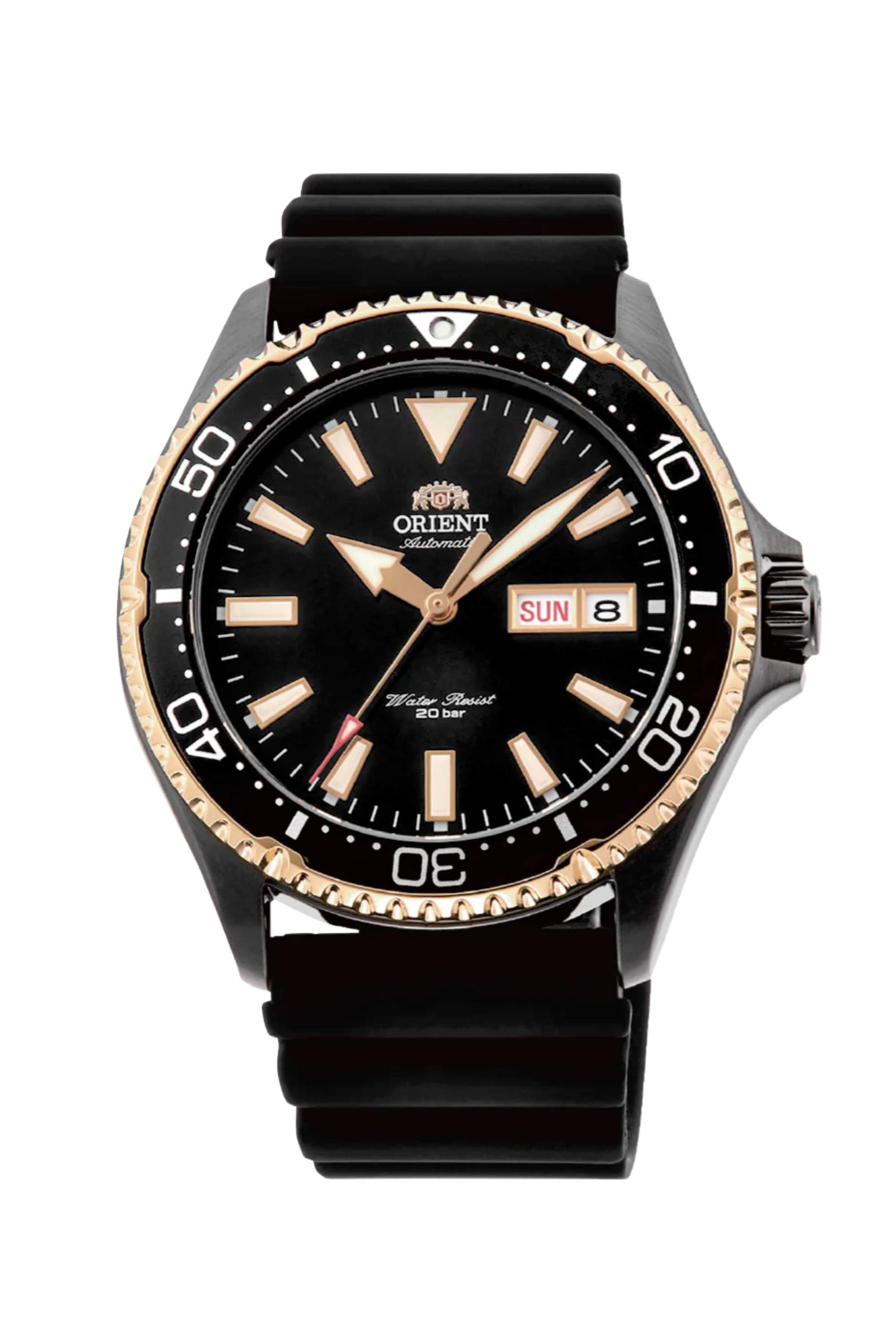 La caja de este reloj mecánico deportivo ORIENT de 41,5 mm, que figura entre los más vendidos de la marca, luce un diseño compacto, apto para llevarlo tanto en el trabajo como en tus aventuras al aire libre. Este elegante reloj deportivo posee una caja de acero inoxidable encahapdo en negro , una correa del mismo material, una esfera azul y una corona de rosca que maximiza la resistencia al agua. Asimismo, incluye un bisel giratorio unidireccional de color azul con números grandes para facilitar el control del tiempo, agujas plateadas con resaltes luminosos, una práctica ventanilla que indica la fecha y unos índices horarios blancos de gran visibilidad. Dado que se puede sumergir hasta 200 metros, el AA02005B es excelente para bucear sin traje de submarinismo.