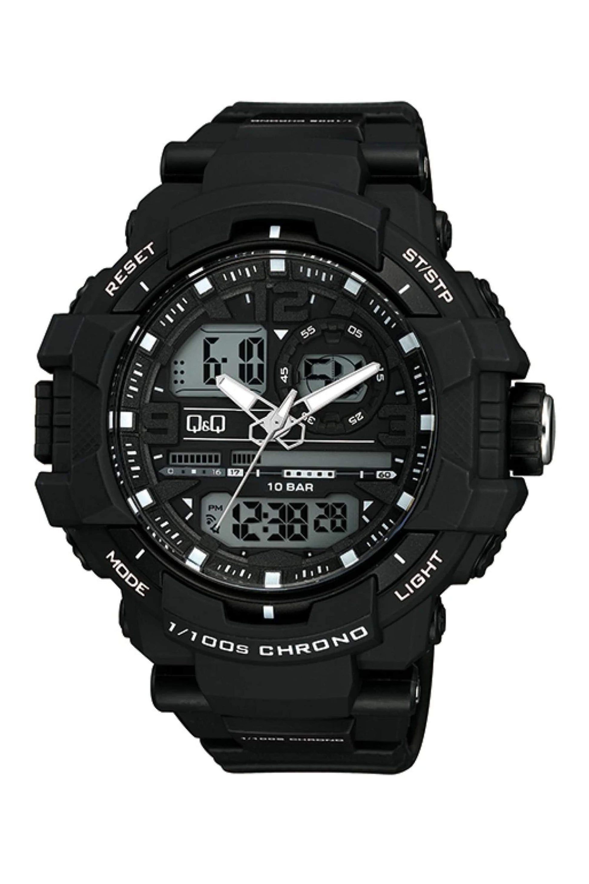El Q&Q Analogo Digital Resina Negro de Hombre GW86J010Y combina lo mejor de ambos mundos. Su diseño en resina negra es resistente y moderno, mientras que las funcionalidades analógicas y digitales ofrecen practicidad y estilo. La precisión japonesa asegura su durabilidad y exactitud.