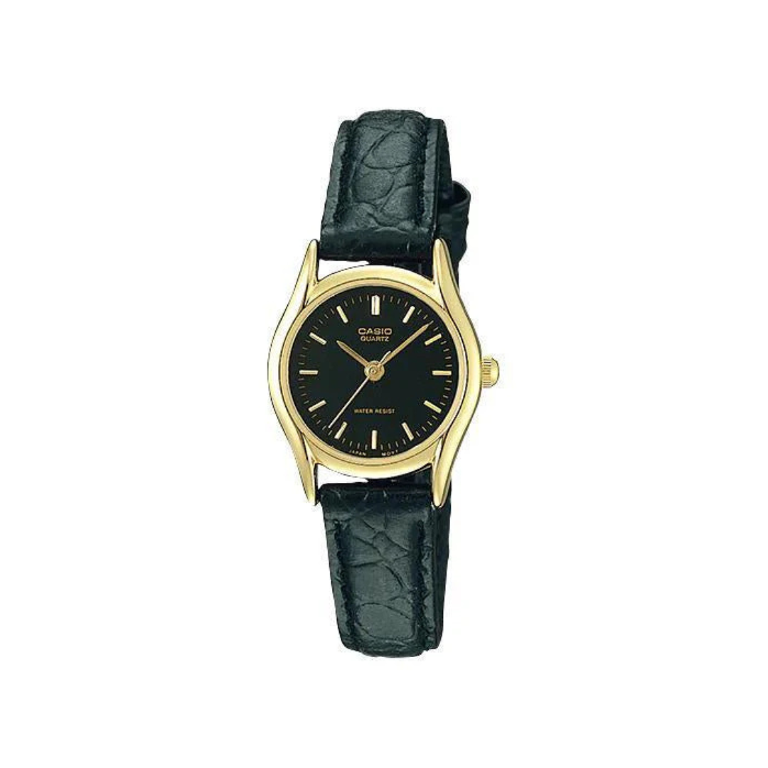 Un reloj de vestir con estética minimalista: caja dorada compacta, esfera negra de alta legibilidad y correa de cuero para máxima comodidad diaria. Su movimiento de cuarzo garantiza puntualidad, mientras que el cristal mineral y la resistencia al agua para uso cotidiano (3 ATM) lo hacen práctico y duradero para todos los días. Ideal para muñecas pequeñas/medianas y para combinar con cualquier outfit.