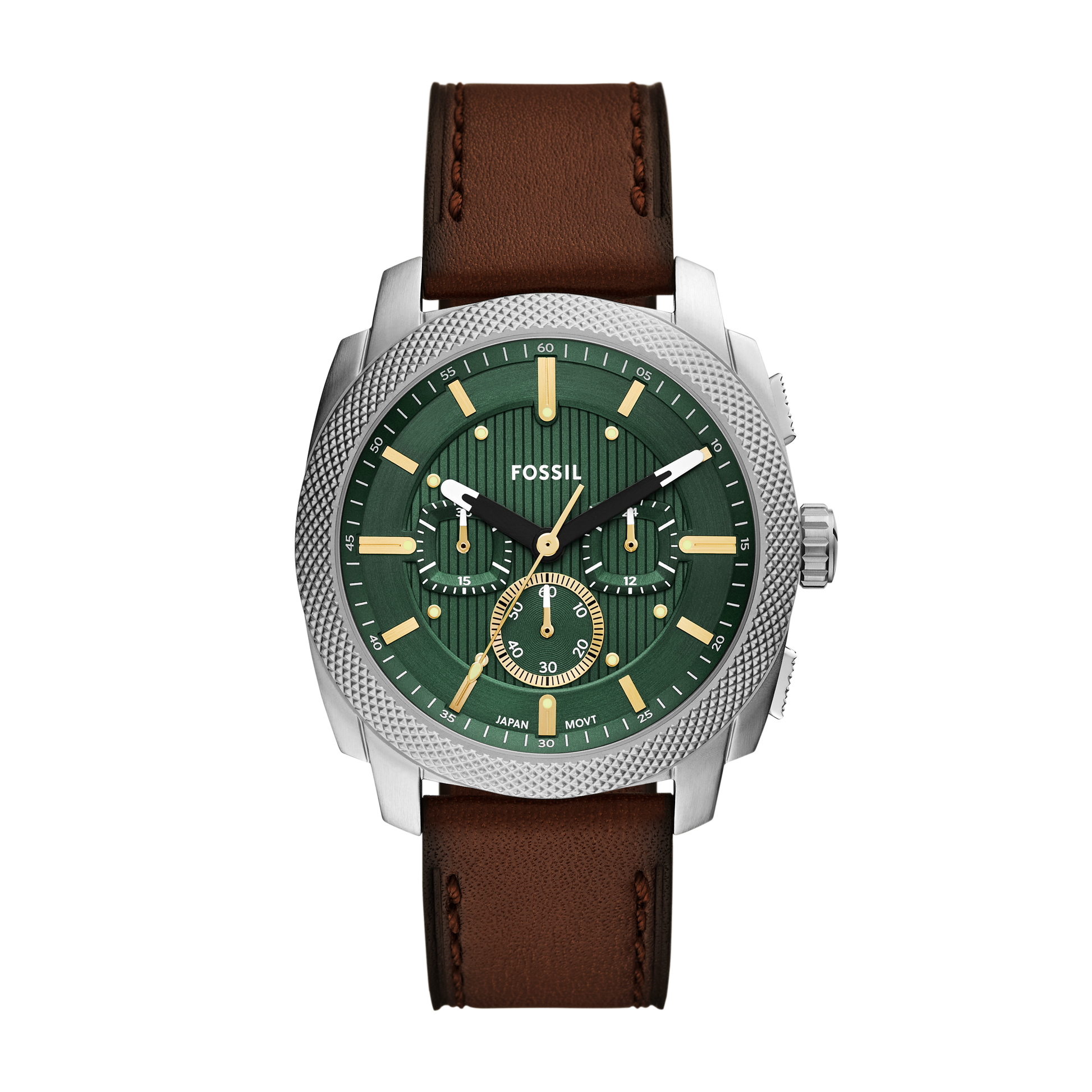 El Fossil Machine FS6100 ofrece el carácter industrial de la línea Machine con caja de acero y esfera de alto contraste. Incorpora cronógrafo de lectura clara y movimiento de cuarzo para precisión confiable, ideal para uso diario, oficina o fin de semana.