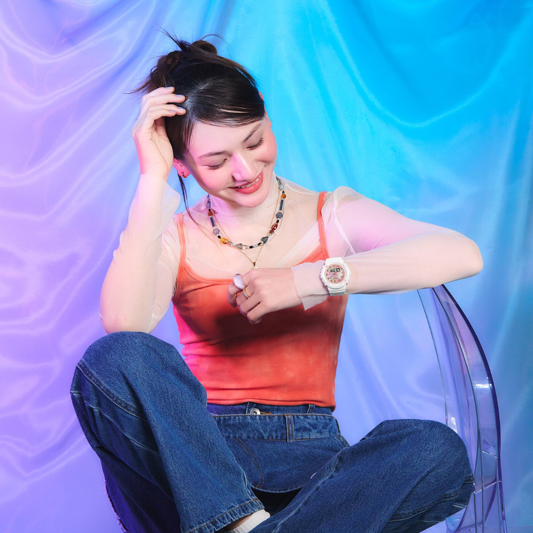 Añada un toque de diversión y alegría a su estilo con un BABY-G con un teñido anudado pastel. Comenzamos con el diseño de la esfera redonda de la BGA-280, que combina diales transparentes para crear un patrón de teñido anudado en colores suaves y divertidos, y añade índices con un acabado de deposición de vapor para otorgarle un brillo adicional. Llenos de vida pero realistas, estos relojes también ofrecen un diseño resistente a los golpes, una resistencia al agua de 100 metros y mucho más, todo para seguir el ritmo de tus días de actividad.