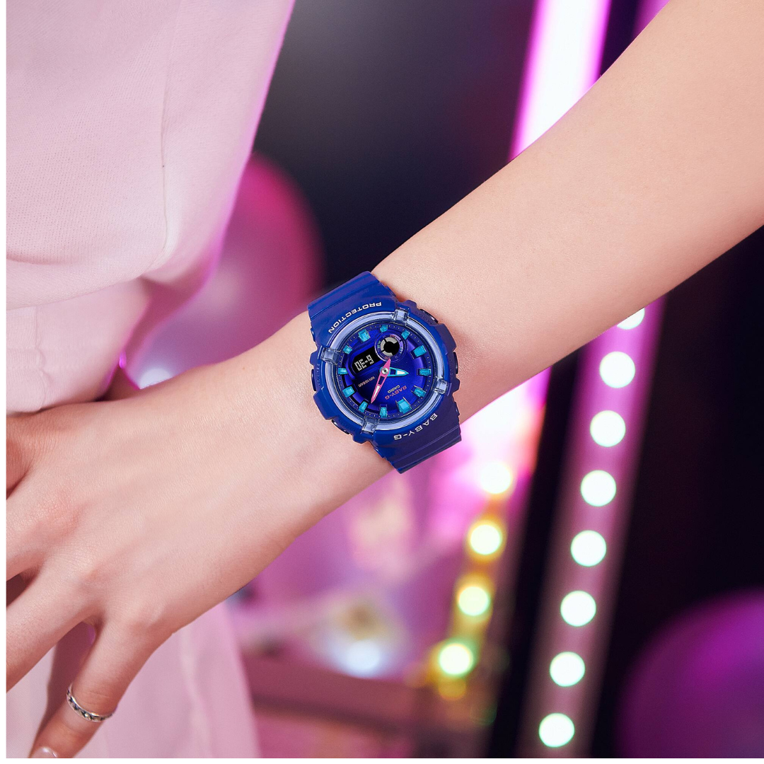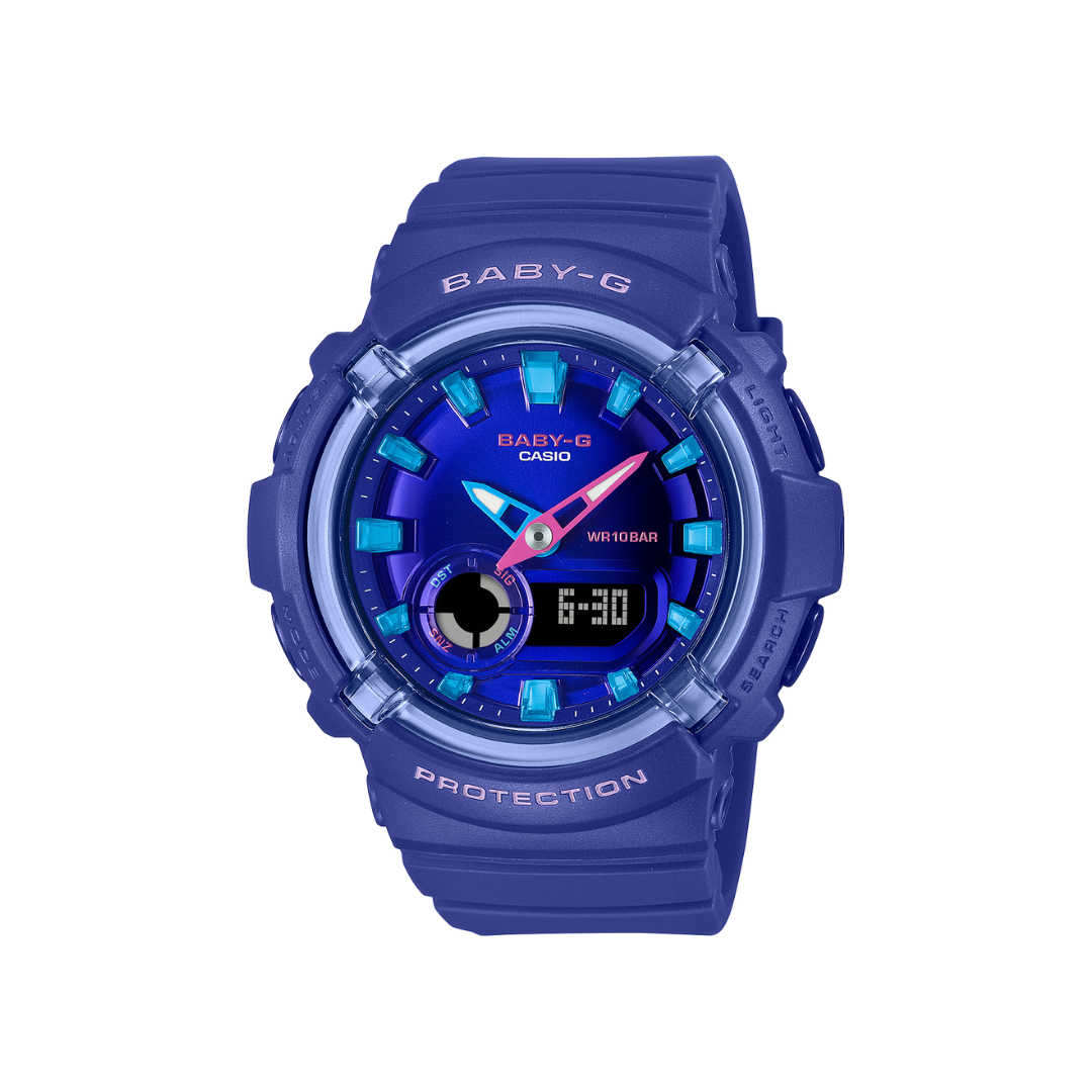 Párese y sienta el ritmo con un BABY-G inspirado en las luces de neón de la pista de baile. El diseño de esfera redonda y de varias capas del BGA-280 cuenta con marcas de índice de barras en neón translúcido para un diseño deportivo con un toque de color adicional. No solo inspirados en el baile, estos relojes también son prácticos con una estructura resistente a impactos y al agua hasta 100 metros de profundidad.