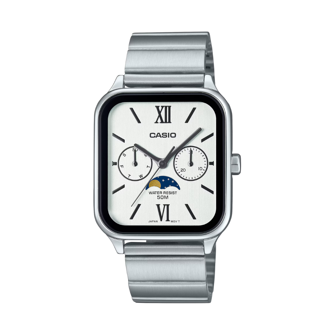 Reloj Análogo Fase Lunar Clásico Plateado de Hombre
