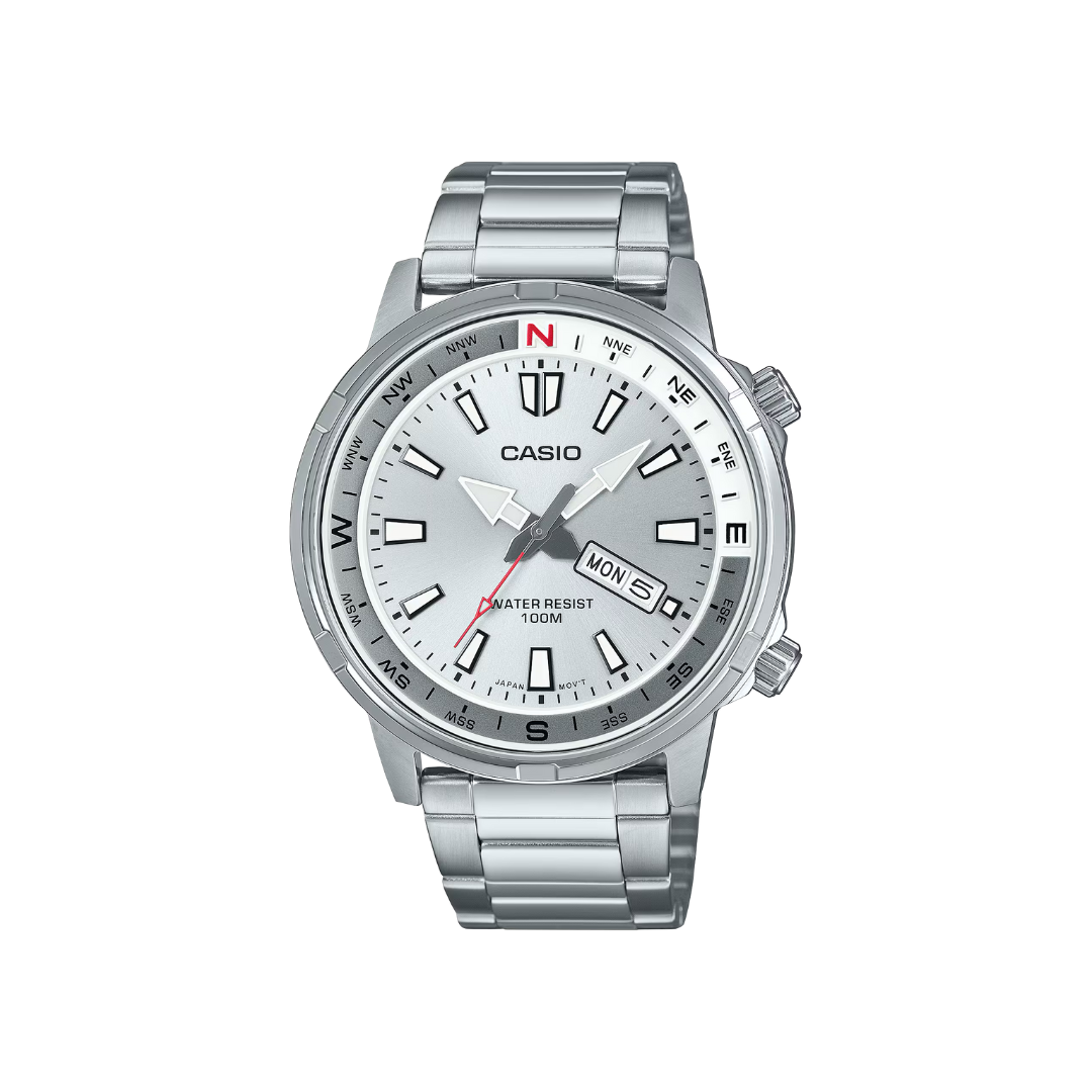 Ábrete camino con un reloj analógico deportivo y elegante que cuenta con un anillo de brújula giratorio. Disfruta de la confianza de saber que seguirás avanzando en la dirección correcta incluso si te pierdes momentáneamente.