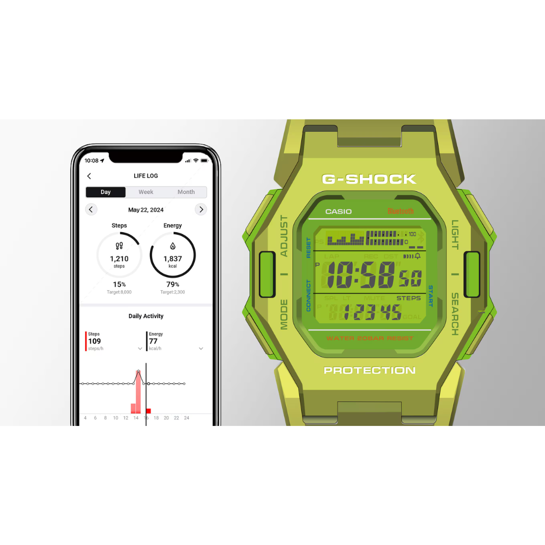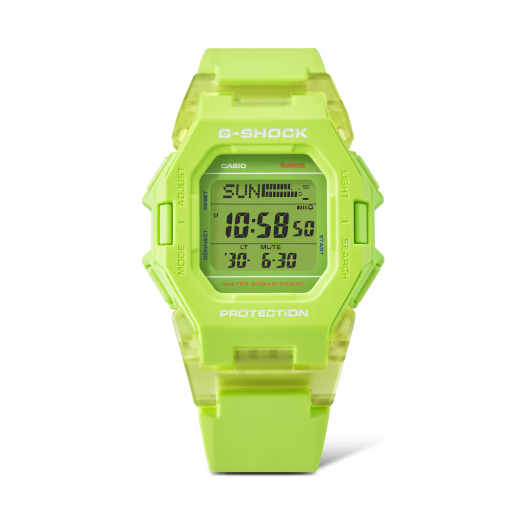 Un G-SHOCK compacto con un diseño audazmente sencillo que traslada el estilo al futuro. El resistente GD-B500 digital es cada vez más pequeño y delgado para satisfacer las necesidades actuales, esto ofrece justo lo que necesita de un reloj con un diseño minimalista y una sensibilidad futurista. Con una carcasa de solo 46,3 mm de diámetro y 11,0 mm de grosor, este G-SHOCK es significativamente más pequeño que los modelos anteriores. Incluso así de pequeño, viene equipado con Bluetooth y un rastreador de pasos para que pueda controlar fácilmente su ejercicio diario. Elija el clásico negro o blanco, o el GD-B500S-3 en amarillo fluorescente dinámico con conectores de correa translúcidos. Naturalmente elegante, el GD-B500 es la clave de las nuevas posibilidades de G-SHOCK.