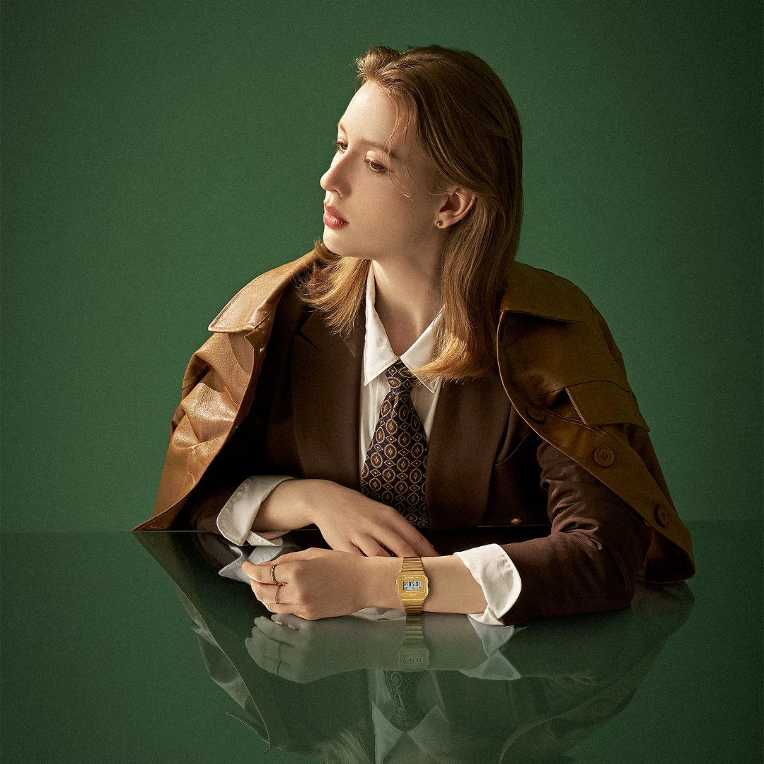 La combinación de colores monocromáticos se funde con el diseño aerodinámico de la esfera. Un aspecto refinado, pura sofisticación vintage. La funda delgada ofrece un ajuste aún más cómodo.