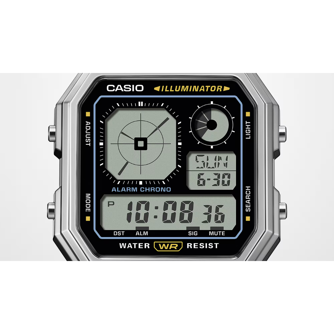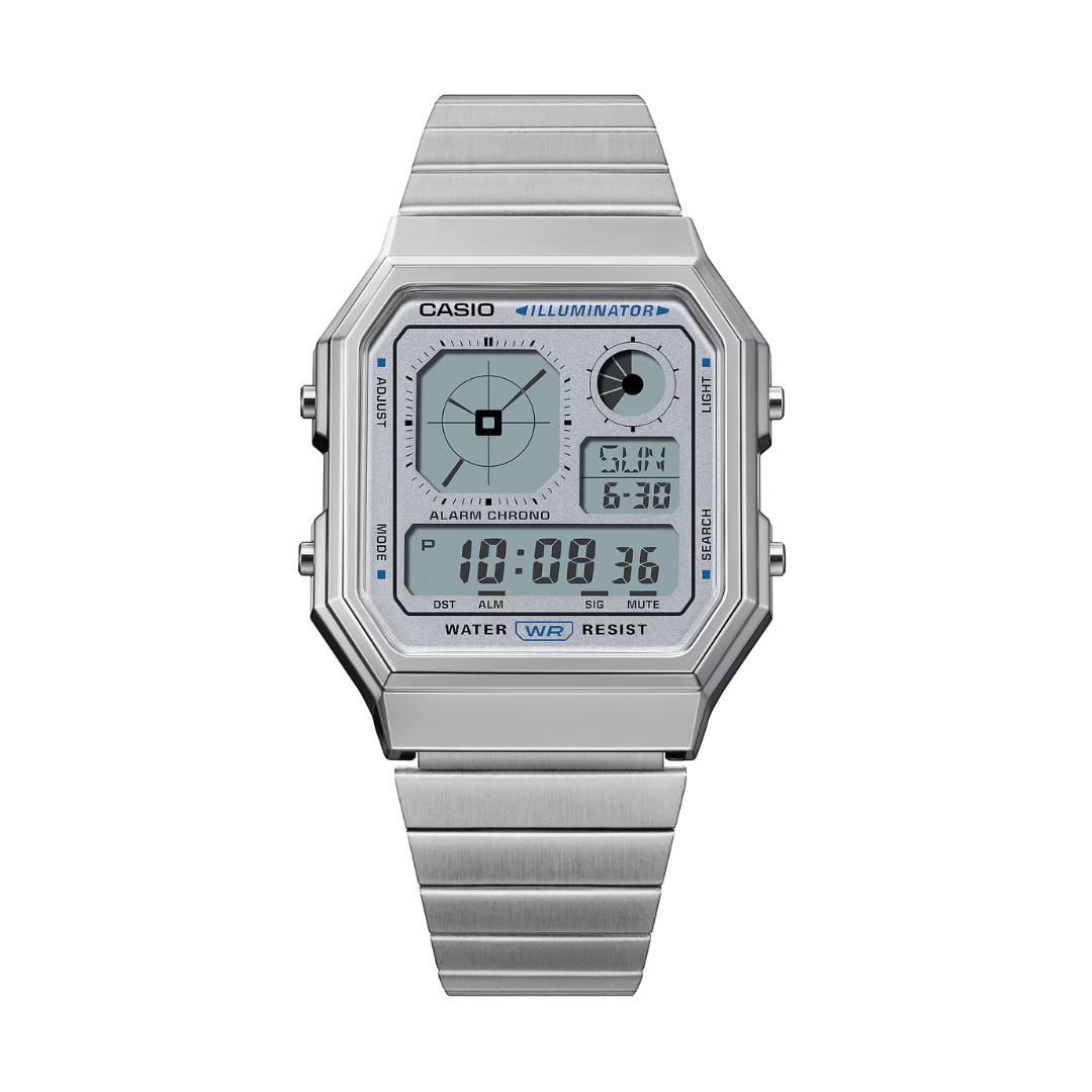 Una propuesta audaz, ecléctica y también funcional. Está equipado con funciones prácticas como resistencia al agua para uso diario, luz LED, cronómetro, alarma y mucho más.