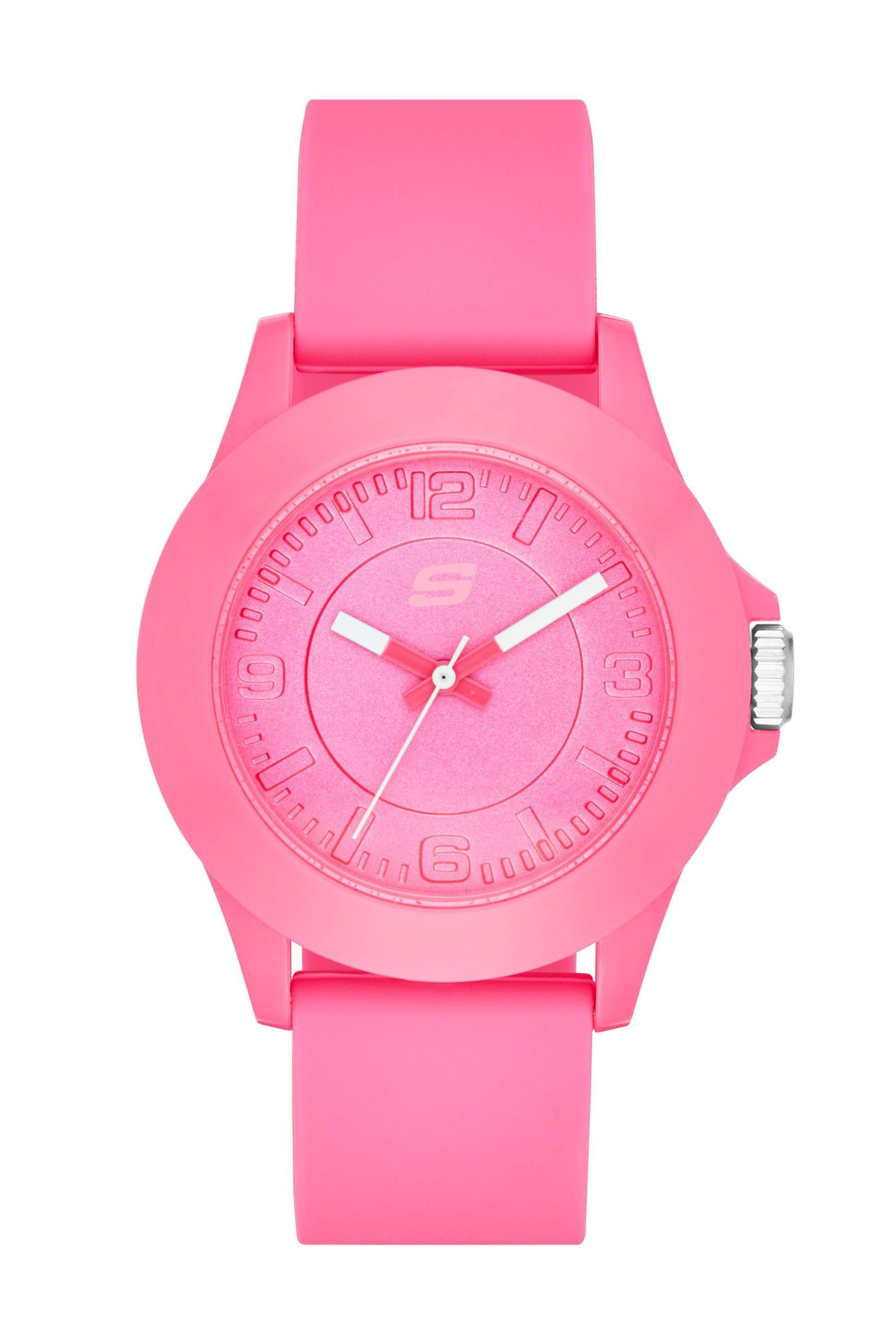 El reloj de tamaño mediano Skechers Rosencrans es perfecto para los conocedores de la moda y los que están en movimiento. Casual y deportivo, presenta un diseño completamente rosa con correa de silicona suave y manecillas blancas de color pop, lo que lo convierte en el reloj "athleisure" imprescindible.