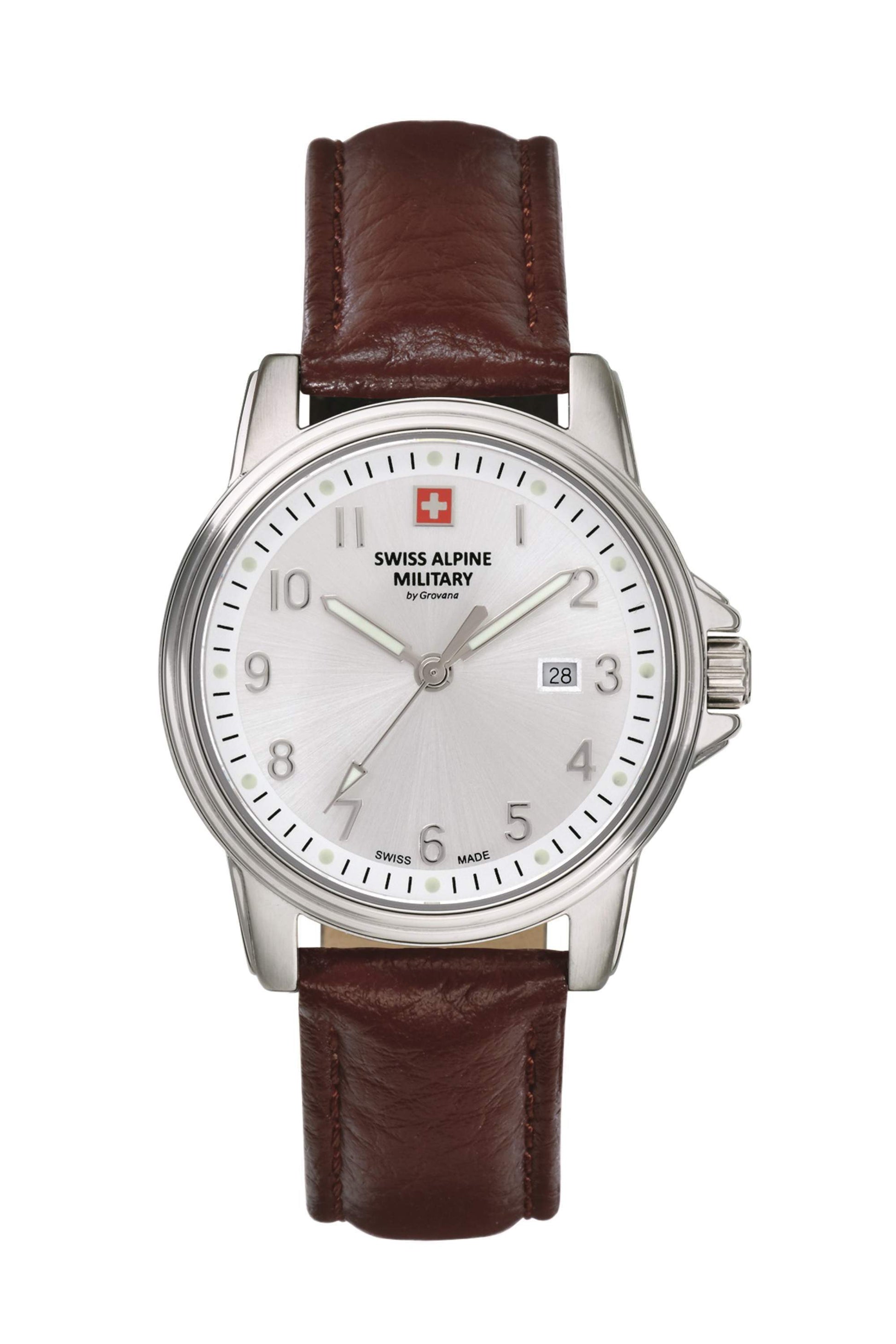 Swiss Alpine Military Leader Plateado y Cuero Cafe de Mujer 7711.1532SAM
