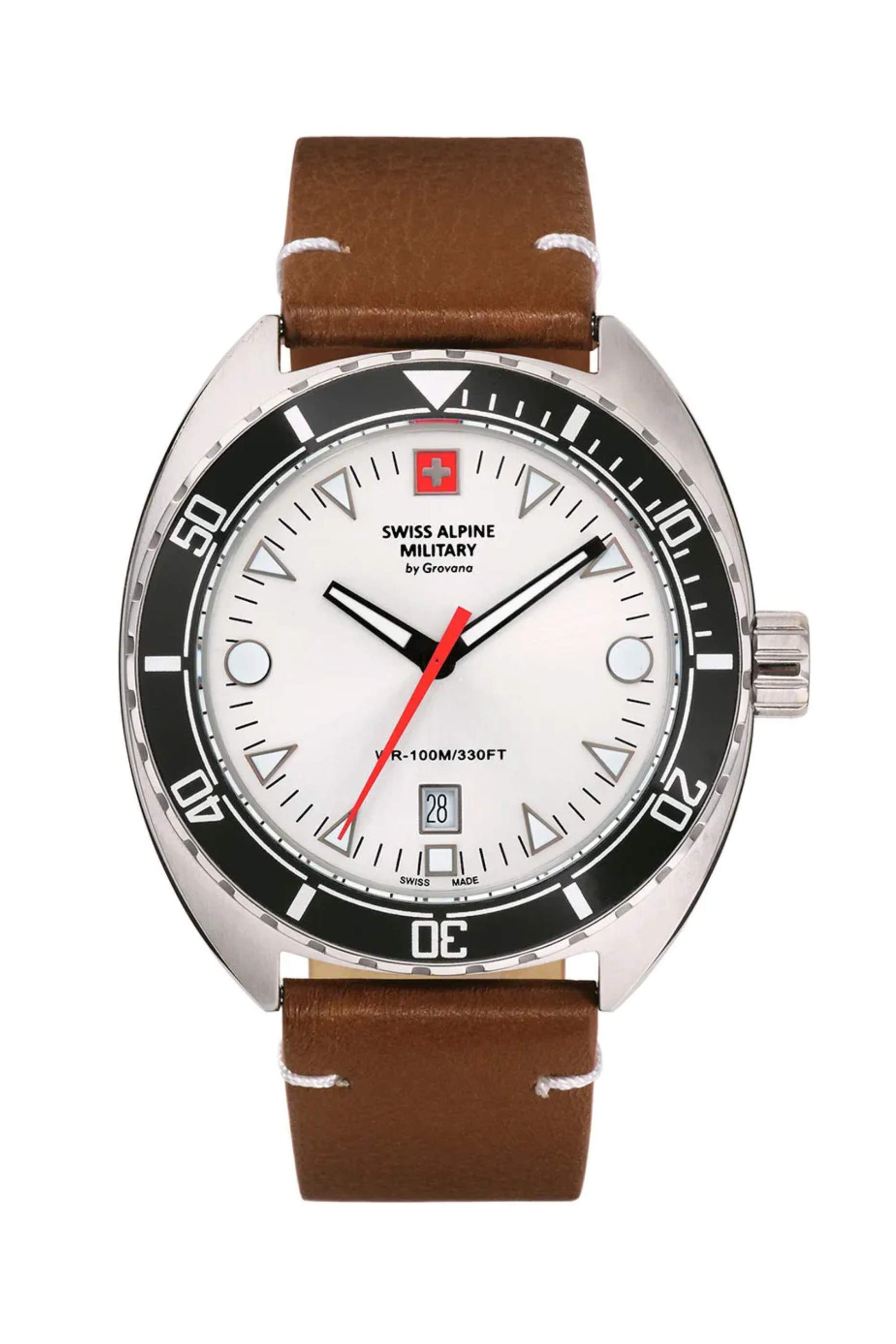 Swiss Alpine Military Navy-20 Plateado y Cuero Chocolate de Hombre 7066.1532SAM