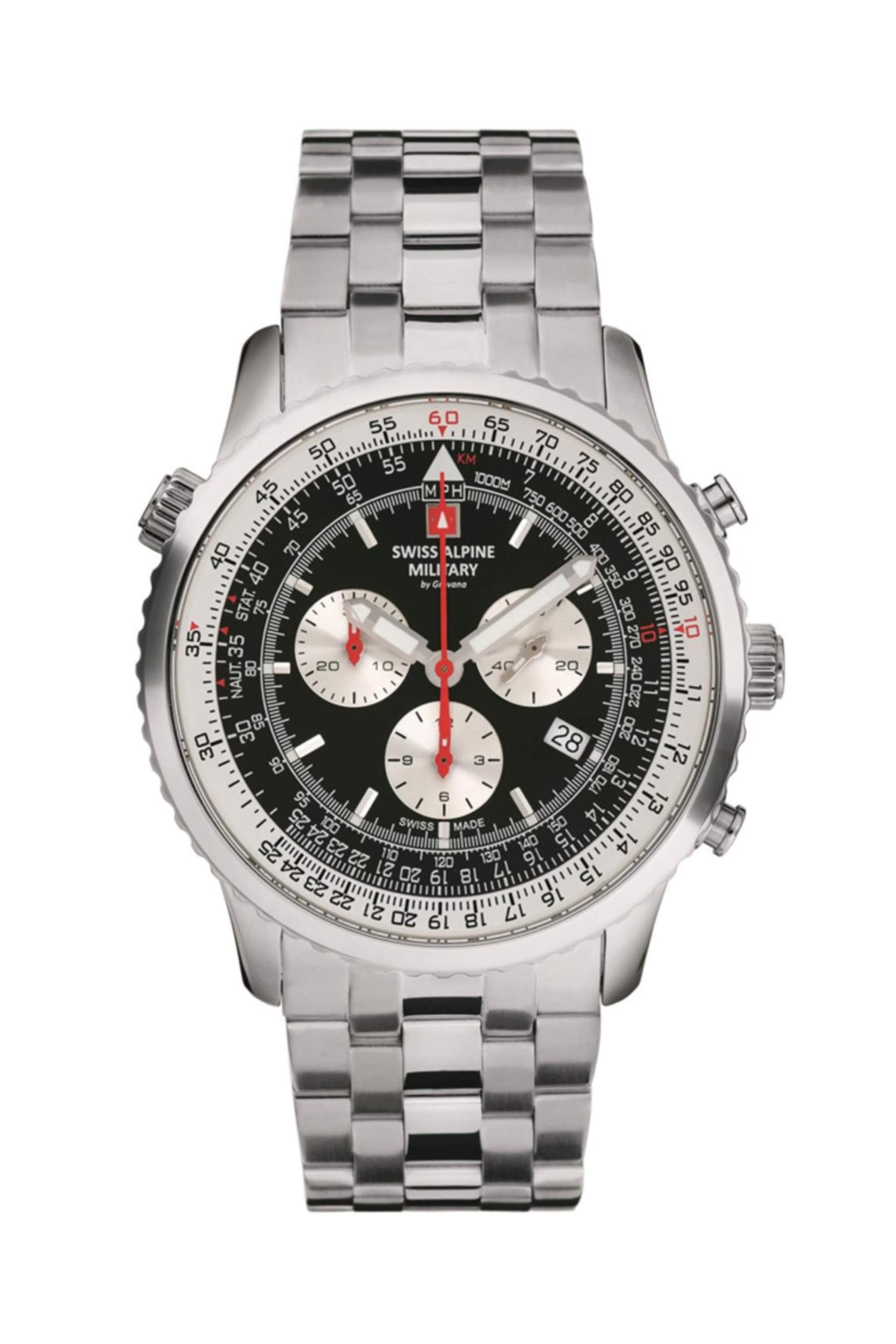Swiss Alpine Military Spirit Cronografo Plateado y Negro de Hombre 7078.9137SAM